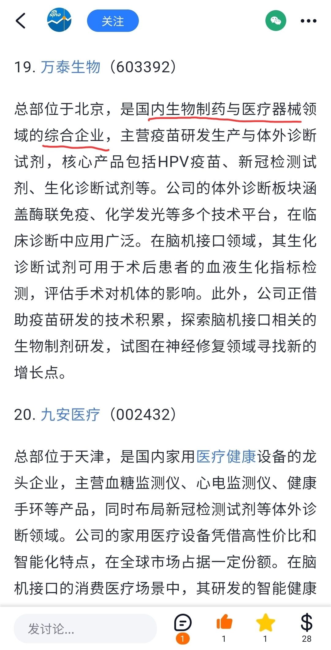 $万泰生物(SH603392)$ 万泰也是脑机,万泰其实什么都是。他是综合性大企业。