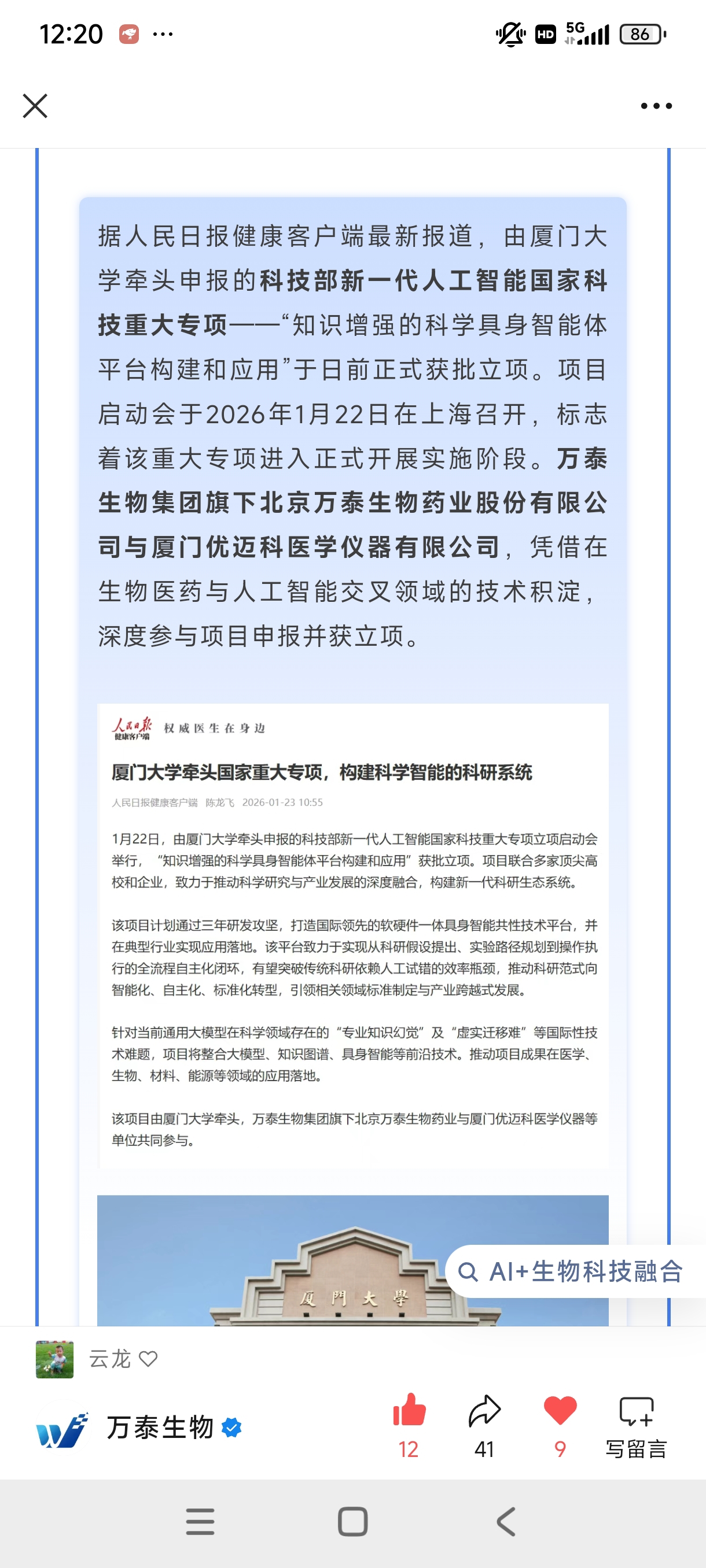$万泰生物(SH603392)$ 昨天晚上发布又撤回,今天中午到底是发布了