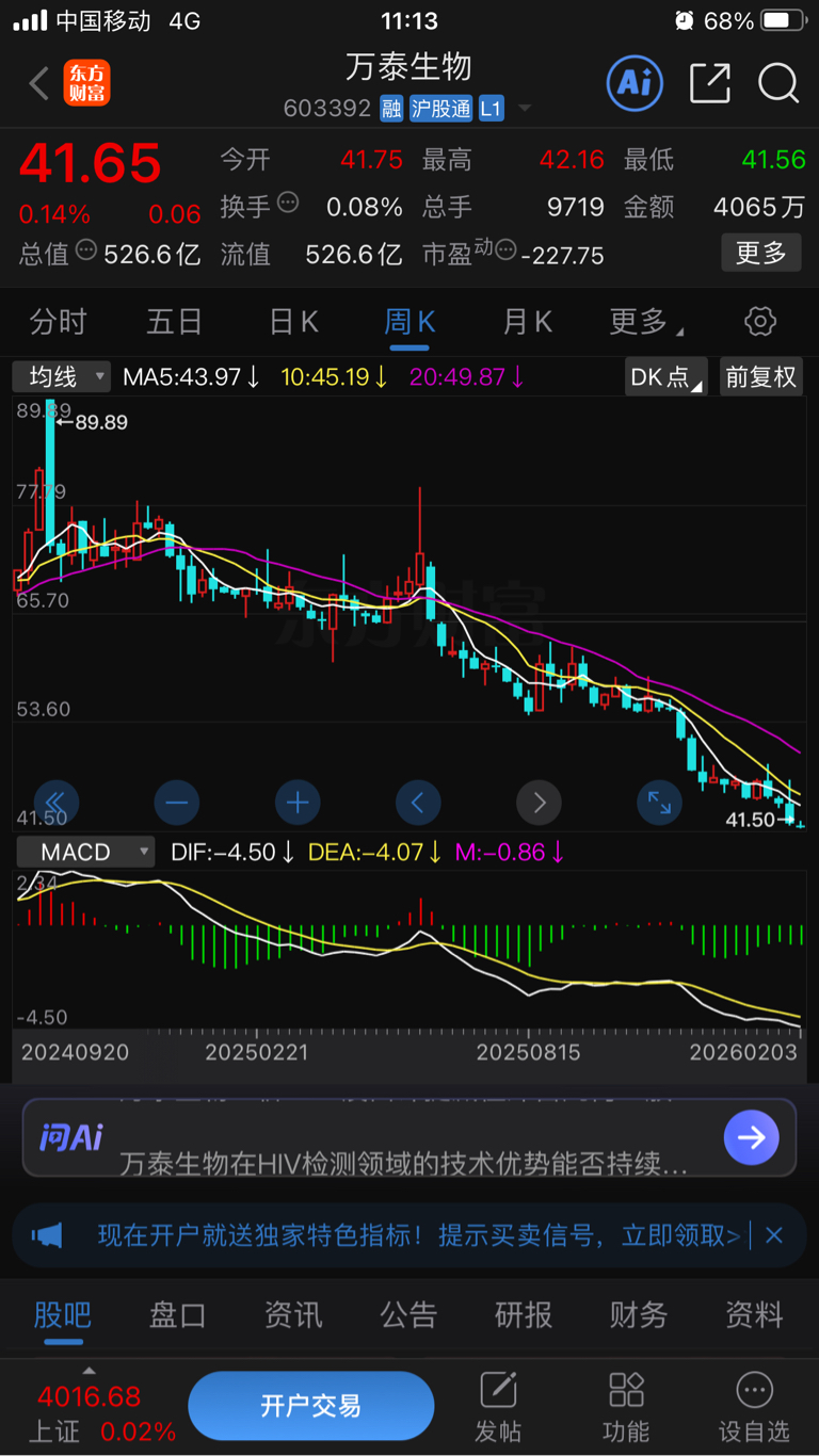 $万泰生物(SH603392)$ 这楼梯下的,什么时候能上楼?
