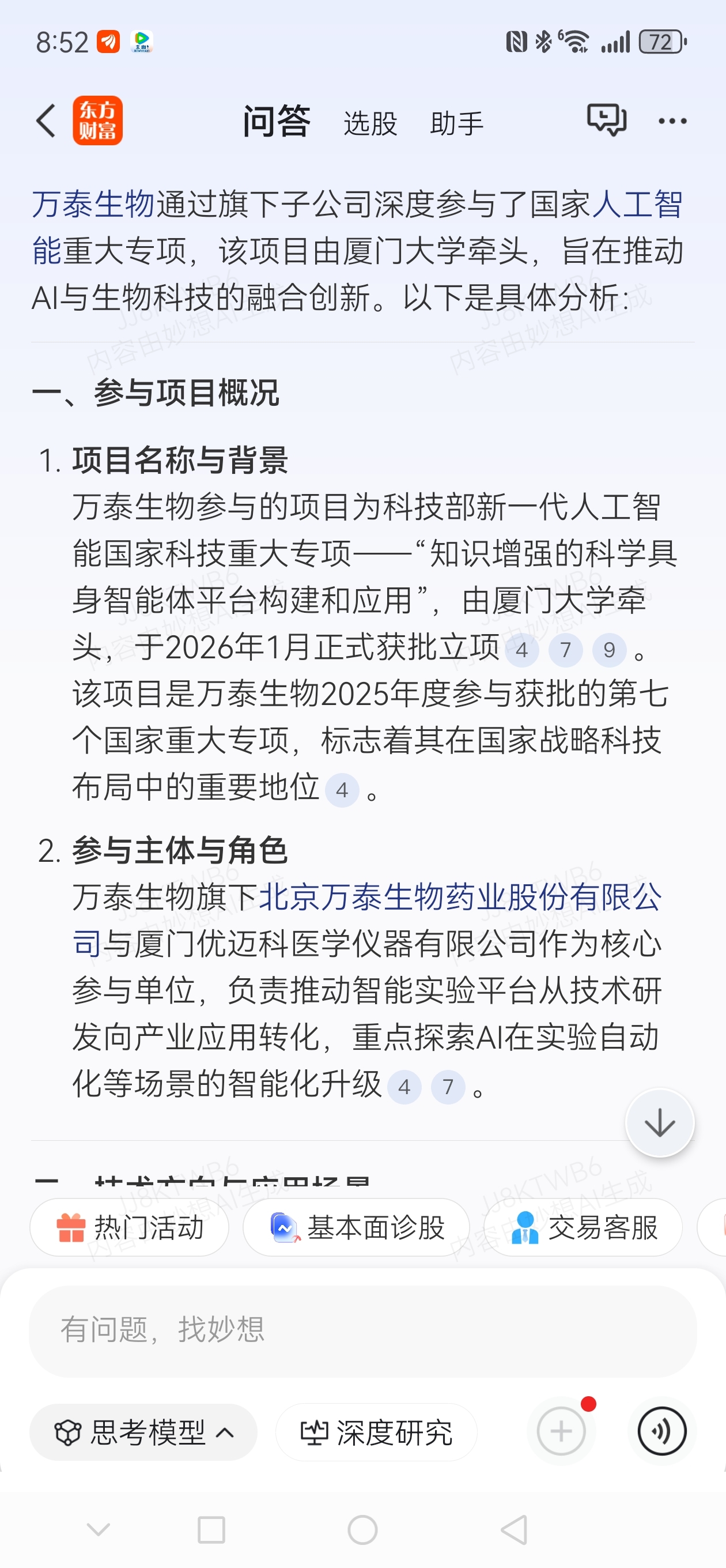 $万泰生物(SH603392)$ 万泰有正宗的AI概念,参加国家重大智能专项。