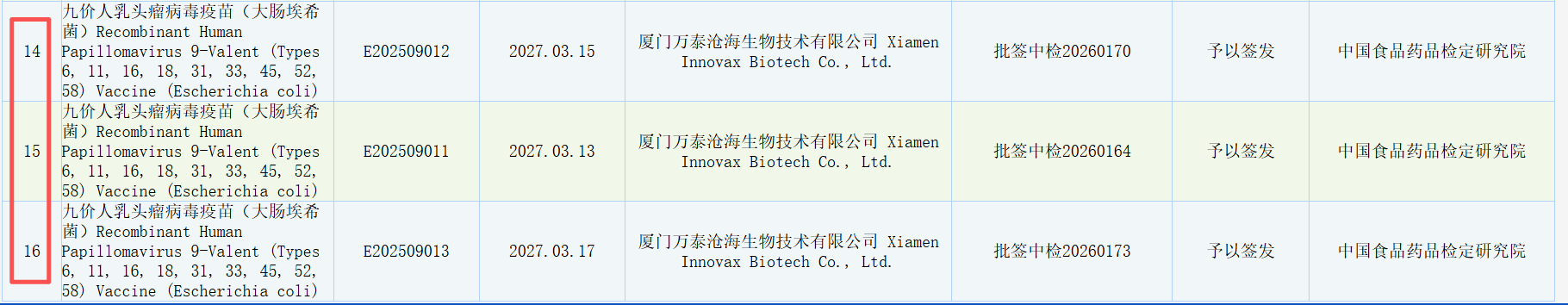 九价批次再添3个,累计19批,产能稳定无忧。