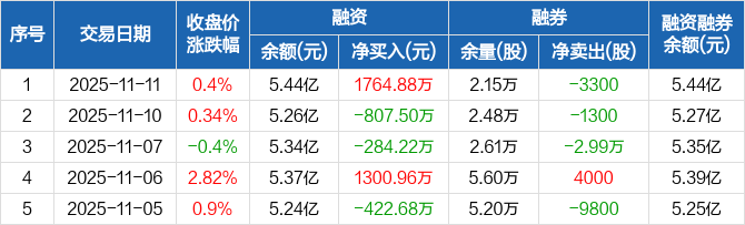 新天然气:融资净买入1764.88万元,融资余额5.44亿元(11-11)