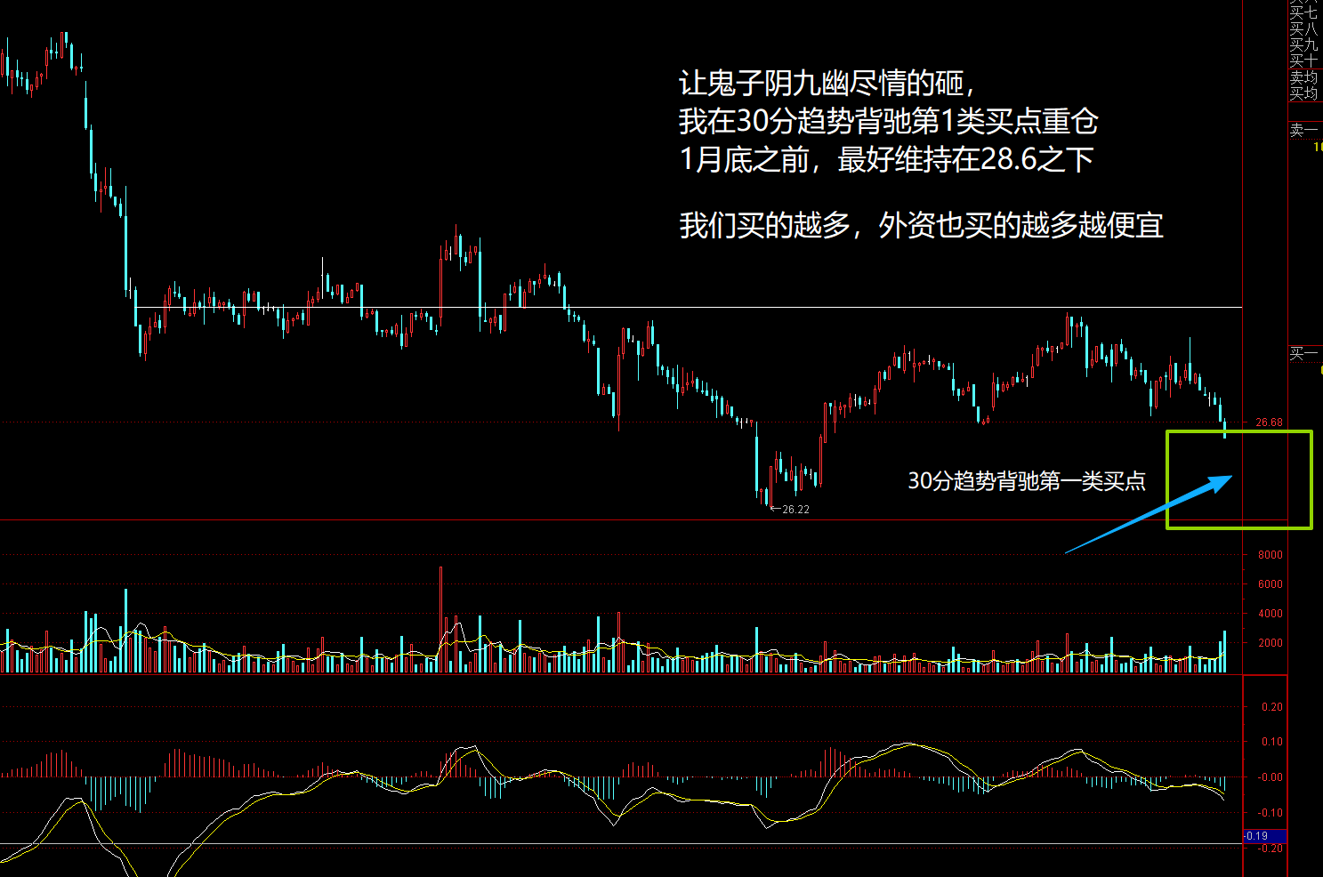 30分趋势背驰的第1类买点,是谁干出来的?就是那个初级水平操盘手。他以为把走势图