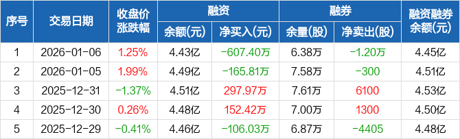 新天然气:融资净偿还607.4万元,融资余额4.43亿元(01-06)