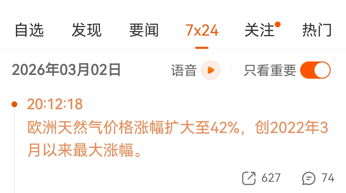 明天买不到了,开盘直接一字了。欧洲天然气直接涨42%!!!新天然气有自己的油气田