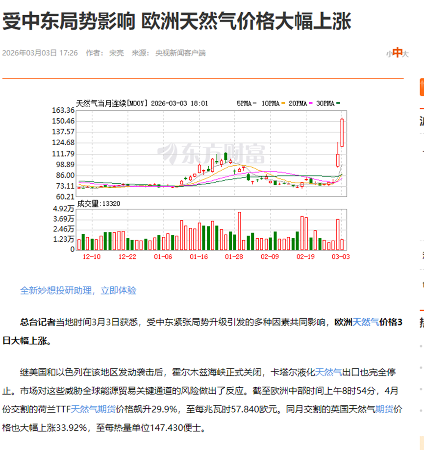 天然气价格两天涨了125%,疯了