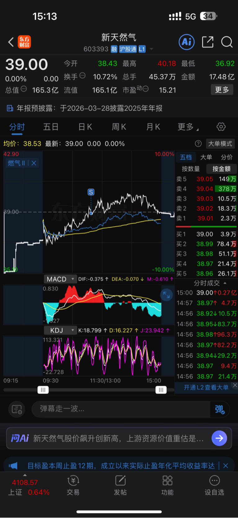$新天然气(SH603393)$ 嘿嘿嘿 突然心情愉悦了