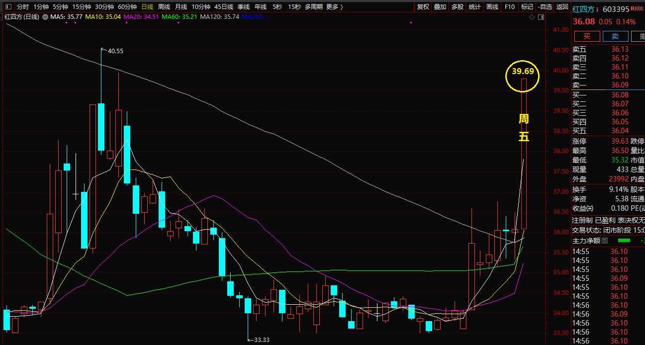 本大师2000股第99天赚1050元;周五第100天涨停板39.69元!