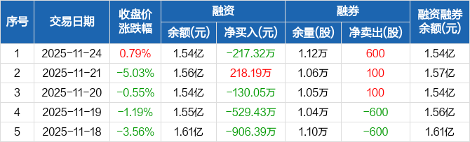 红四方:融资净偿还217.32万元,融资余额1.54亿元(11-24)