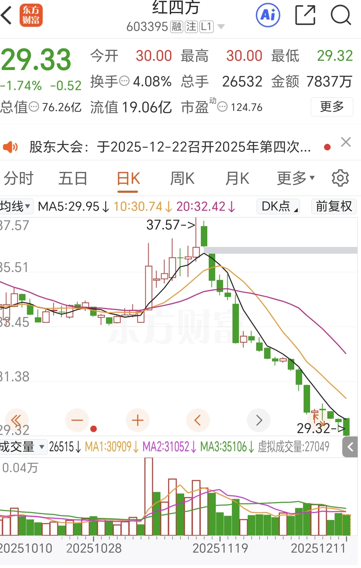 $红四方(SH603395)$ 红的时候屈指可数~大绿四方…
