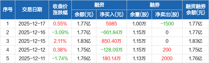 红四方:融资净买入5985元,融资余额1.77亿元(12-17)