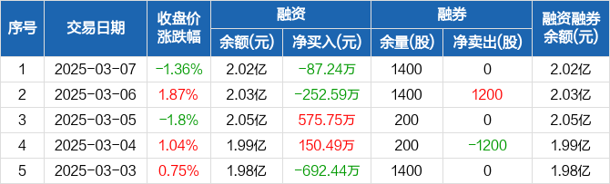金辰股份:融资净偿还87.24万元,融资余额2.02亿元(03-07)