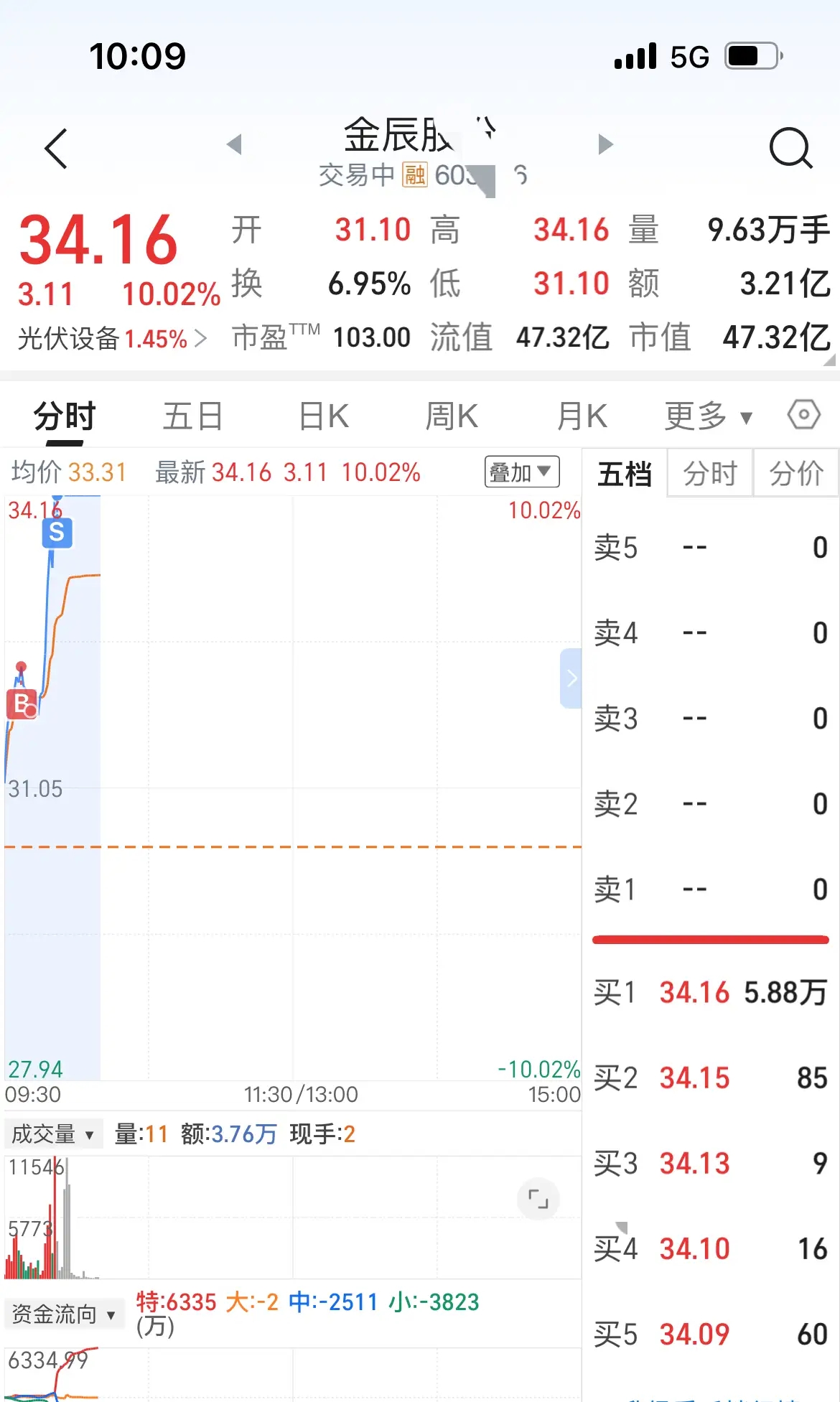 $金辰股份(SH603396)$ 今天运气不错哦