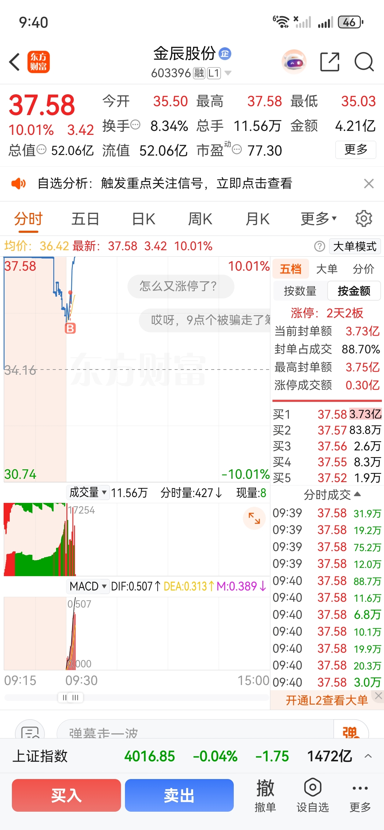 $金辰股份(SH603396)$ 半导体卖掉那一半仓位,追了它,你给我封住了,我明天就走