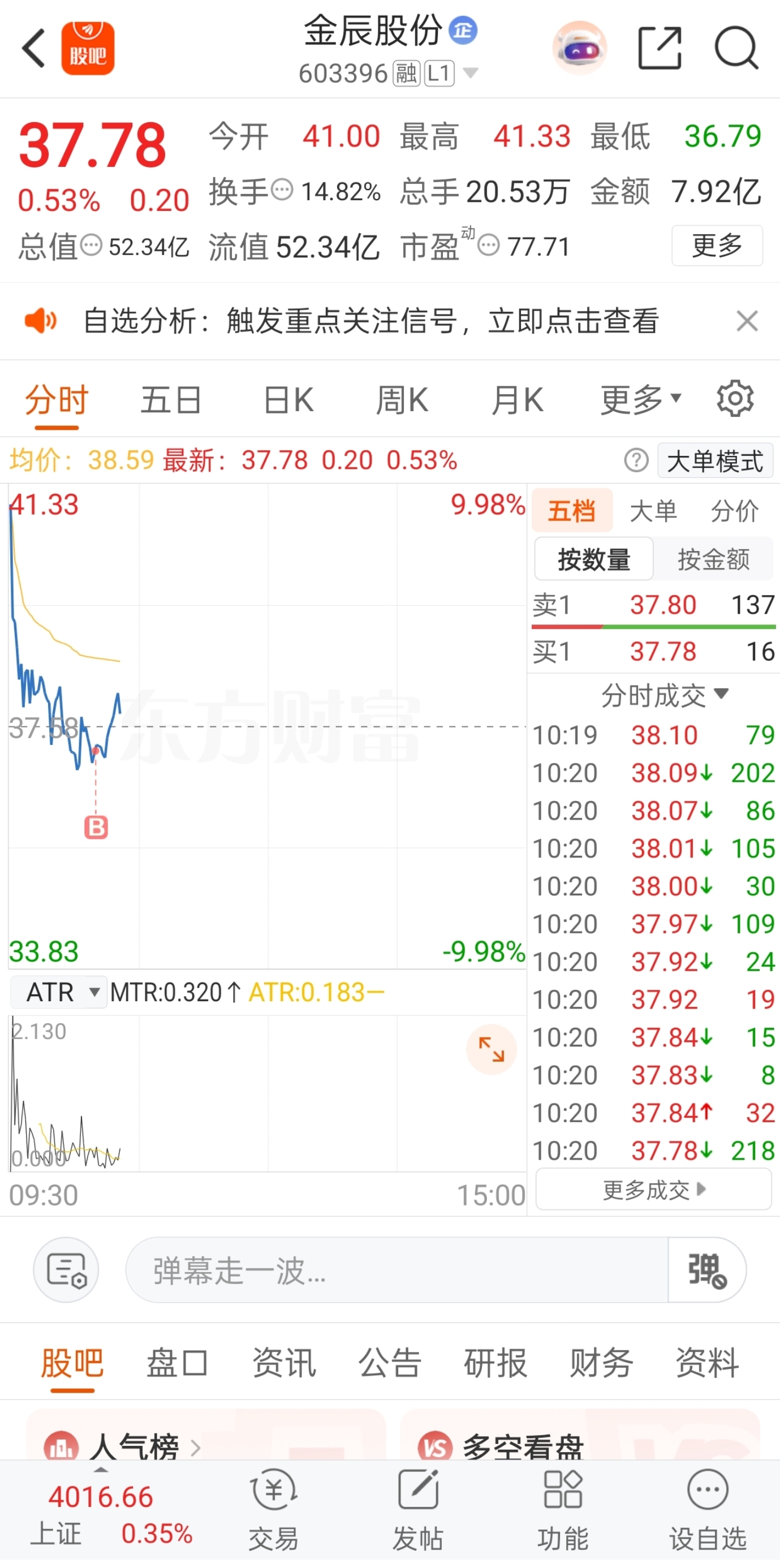 早盘选择水下介入了个股$金辰股份(SH603396)$