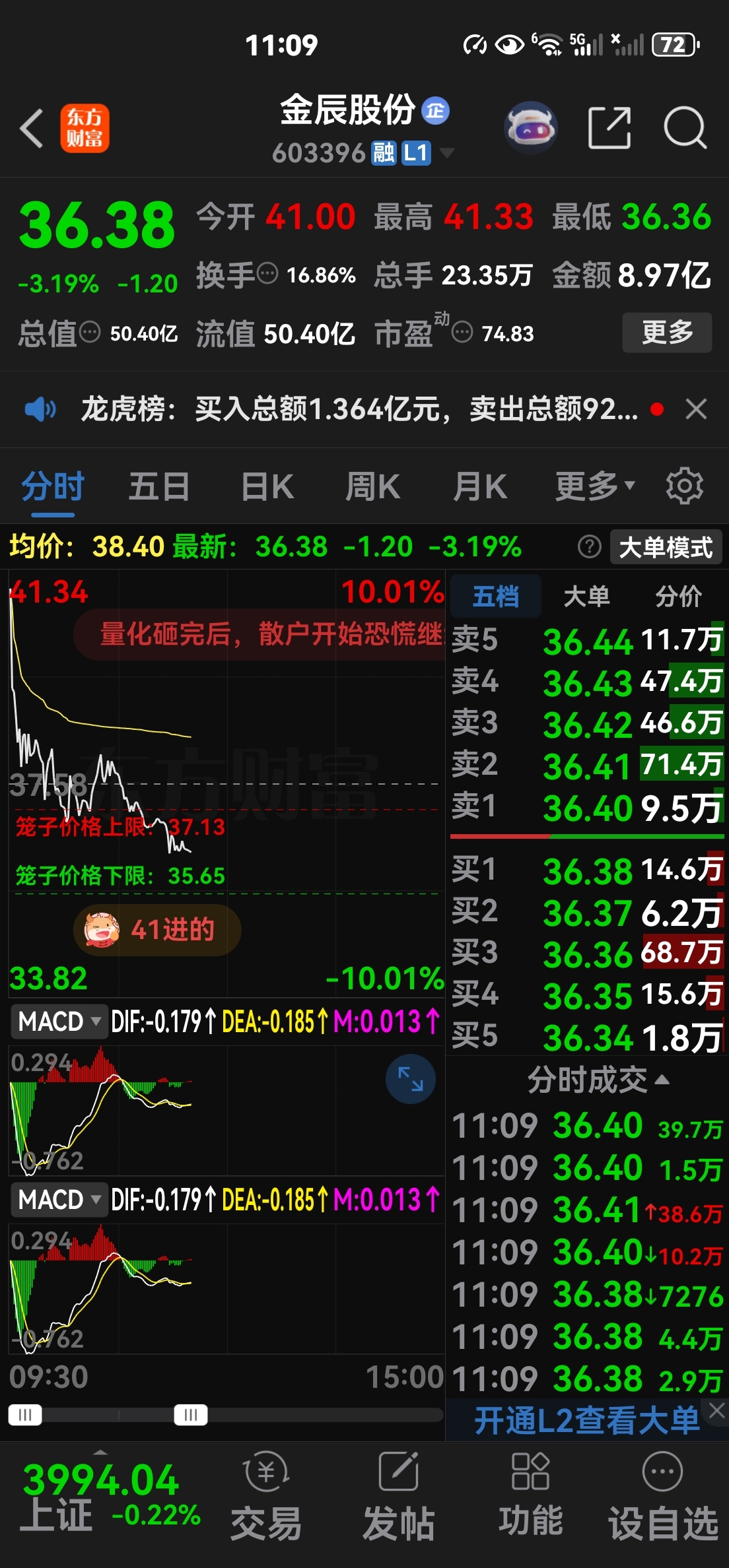 $金辰股份(SH603396)$ 【36.38】彻底全仓,买进就大赚,我没有失败,超级管理短线,开直播推荐