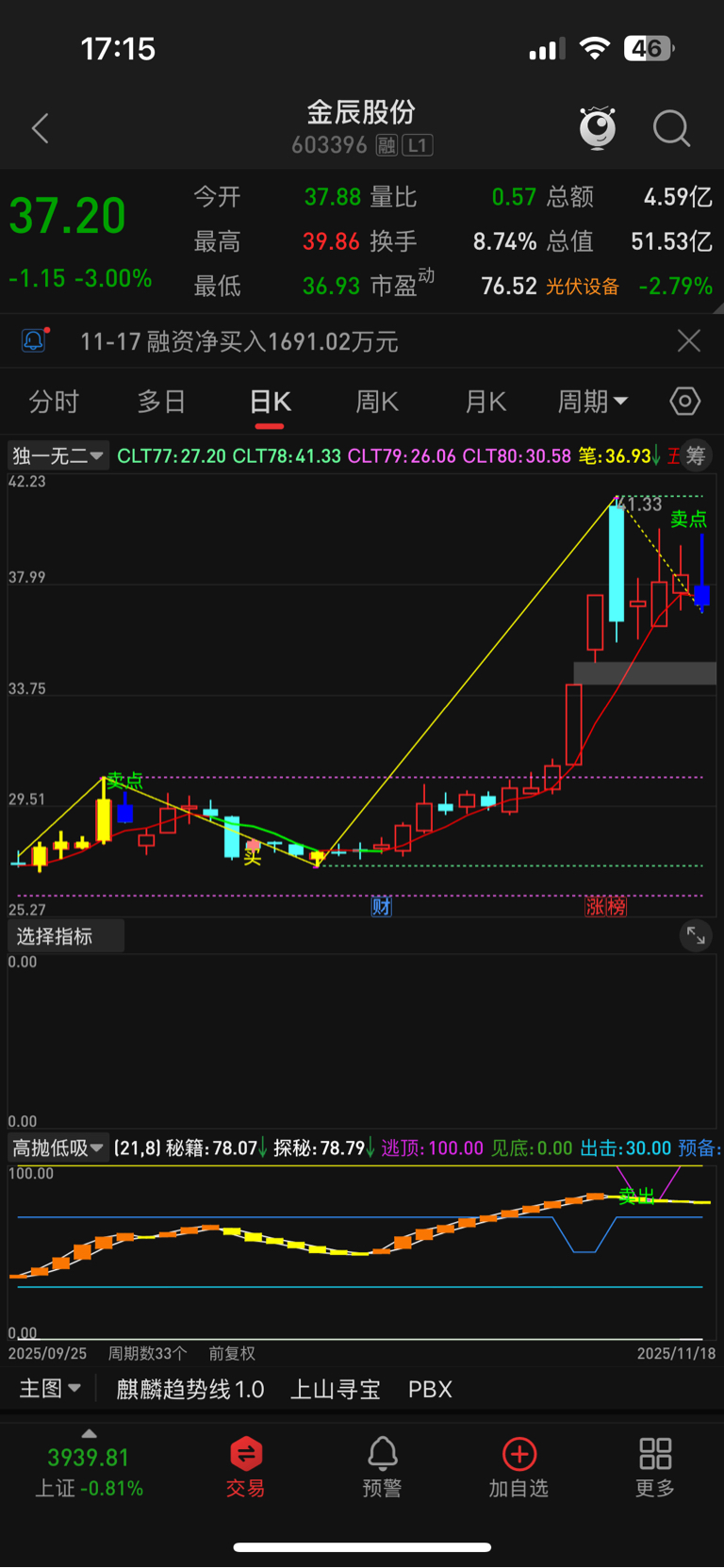 $金辰股份(SH603396)$ 哎,只有死扛了,出卖点了,一般都很准,金瑞矿业出现割了,这个又出现了
