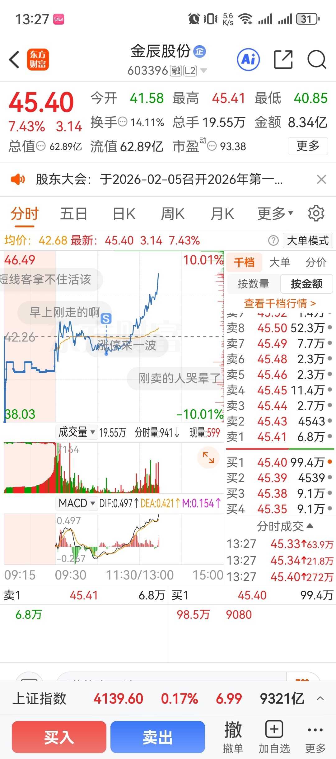 $金辰股份(SH603396)$ 无语了,早上这个位置我是要加仓的。结果按快了点成卖了,卖了就没想进了,结果你这样涨,天杀啊。