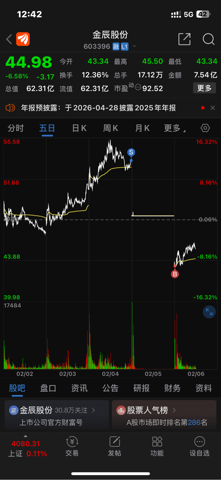 $金辰股份(SH603396)$ 发贴发贴,大家都来发贴吧,把这破股打下来,套牢猪力