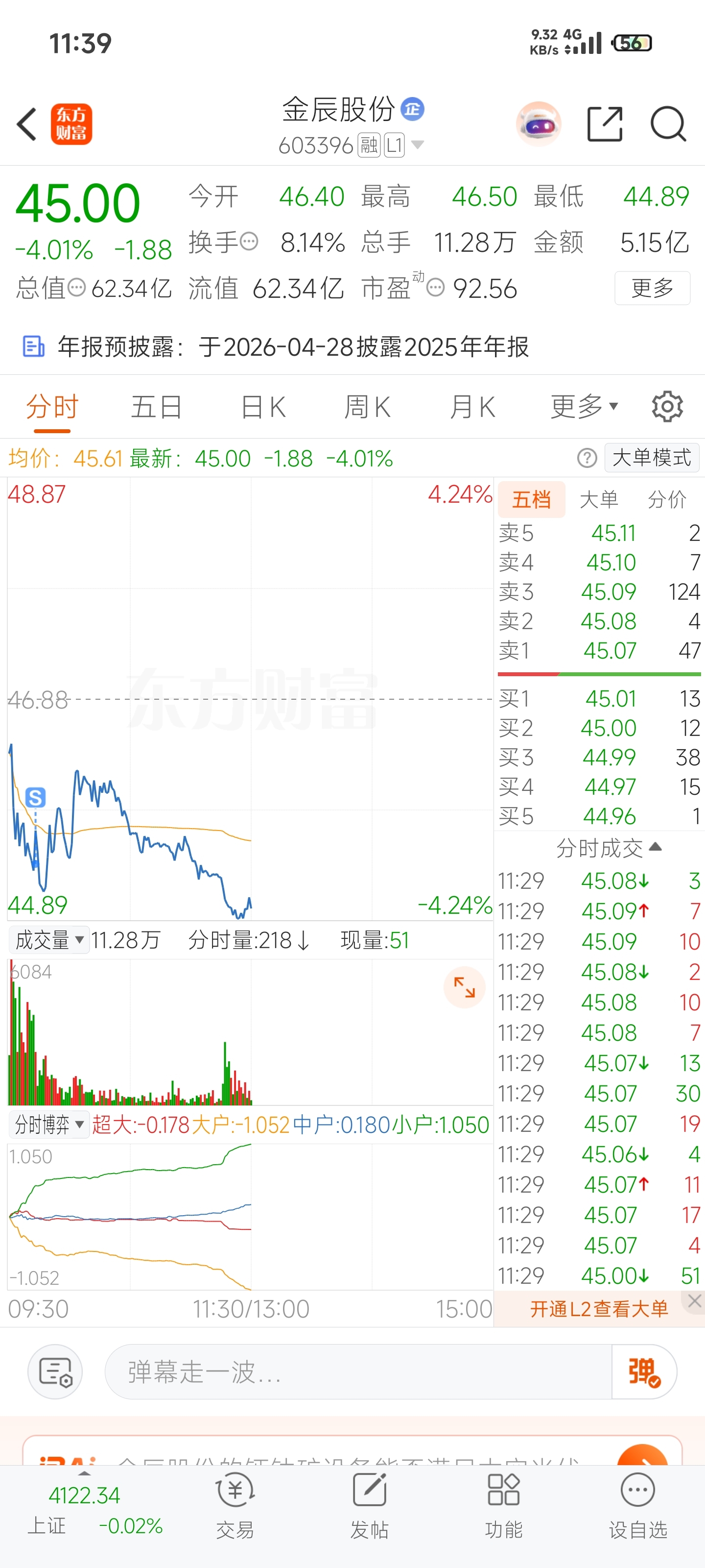 $金辰股份(SH603396)$ 昨天红进来的,今天差不多最低割的。 你是真牛 亏了我大几千