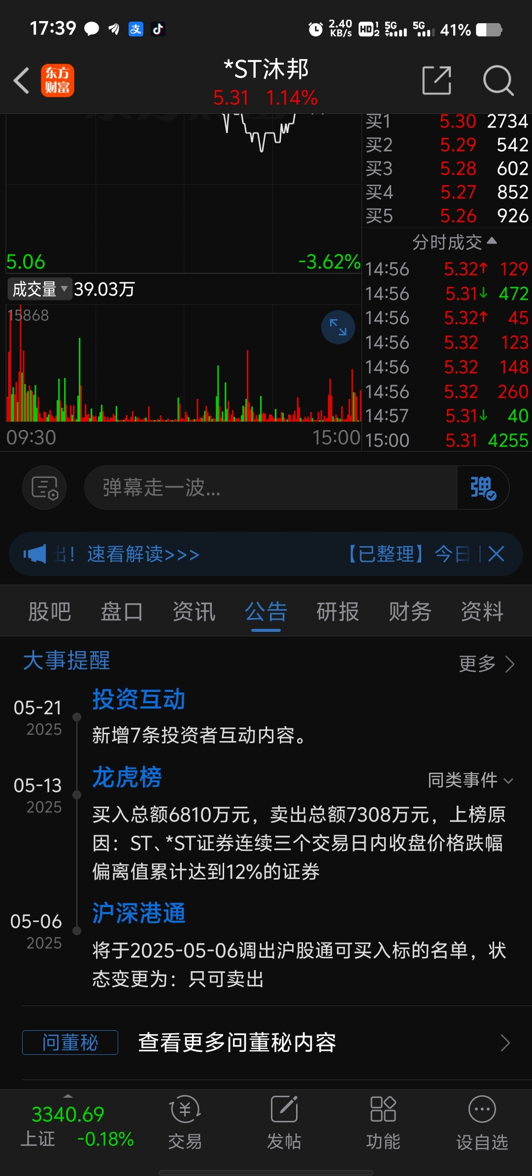$*ST沐邦(SH603398)$ 调出沪港通的资金,只能卖不能买,估计要退