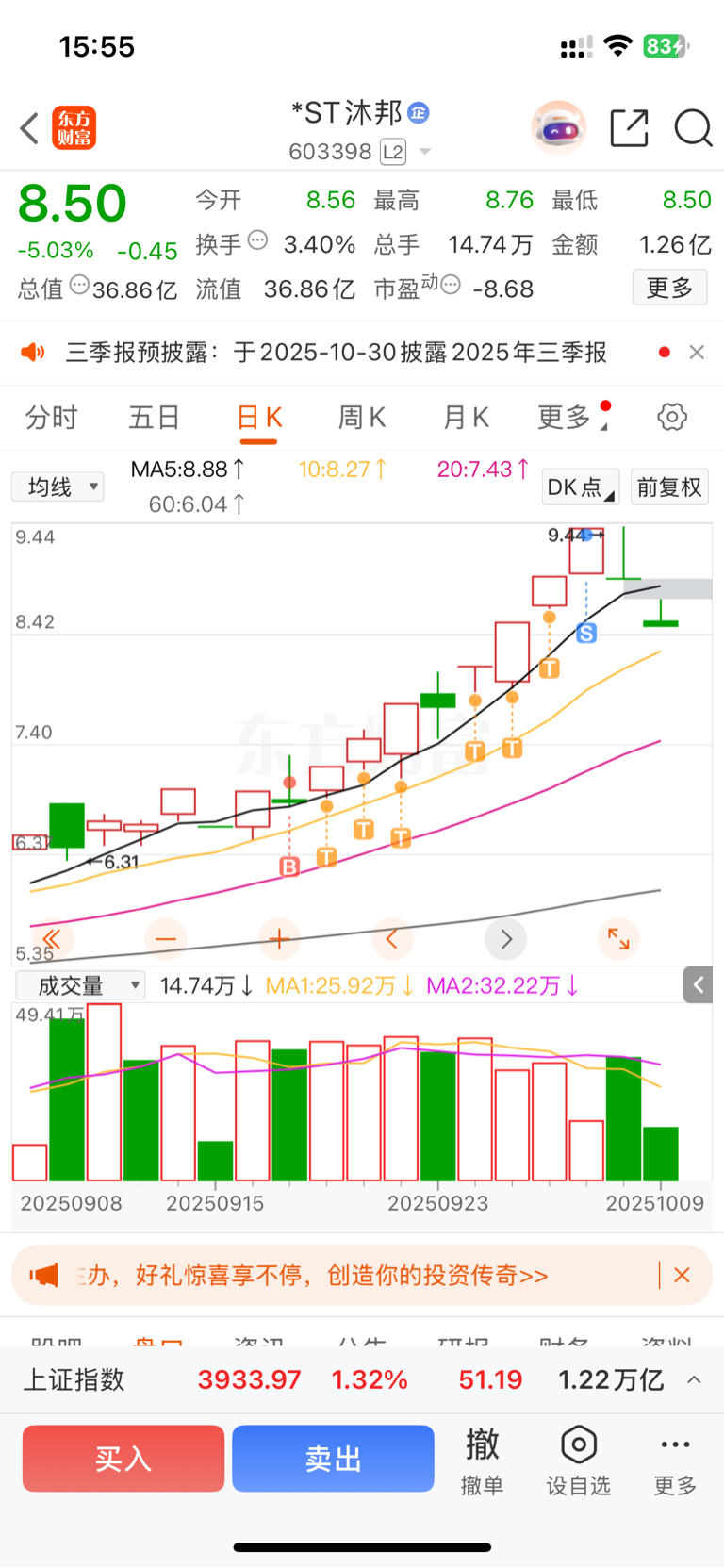 $*ST沐邦(SH603398)$ 还有两个跌停板才能止跌!