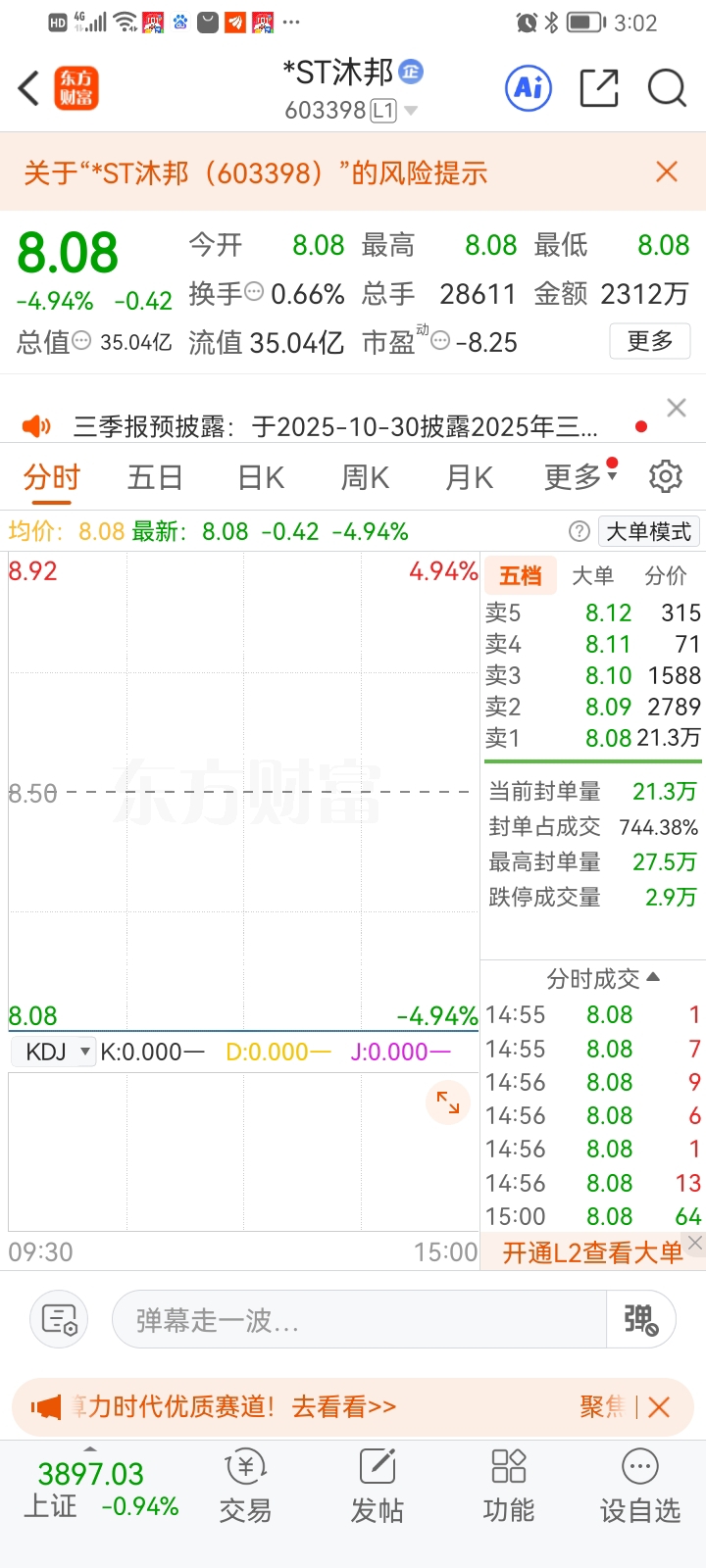 $*ST沐邦(SH603398)$ 大V抱团割韭菜股邦子。$*ST聆达(SZ300125)$