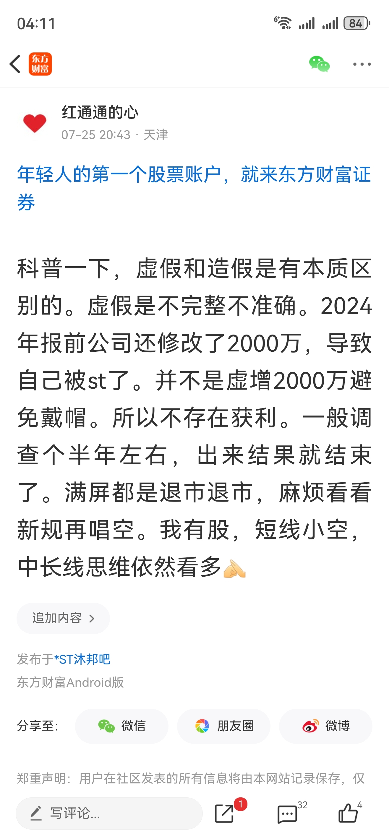 温馨提示: 1.根据《证券法》规定,禁止编造、传播虚假信息或者误导性信息,扰乱证券市场;2.用户在本社区发表的所有资料、言论等仅代表个人观点,与本网站立场无关,不对您构成任何投资建议。用户应基于自己的独立判断,自行决定证券投资并承担相应风险。《东方财富社区管理规定》