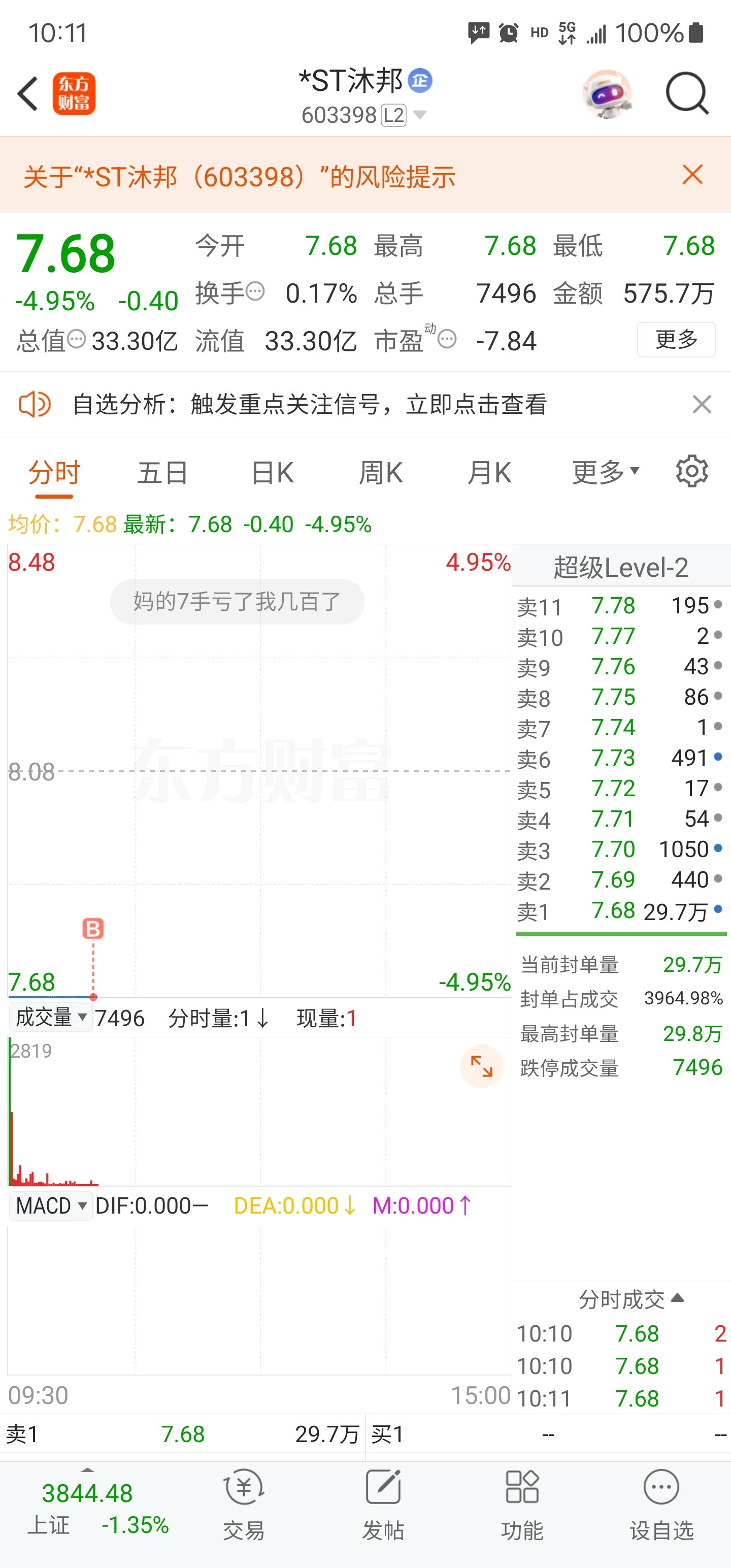 $*ST沐邦(SH603398)$ 买几手随便玩玩