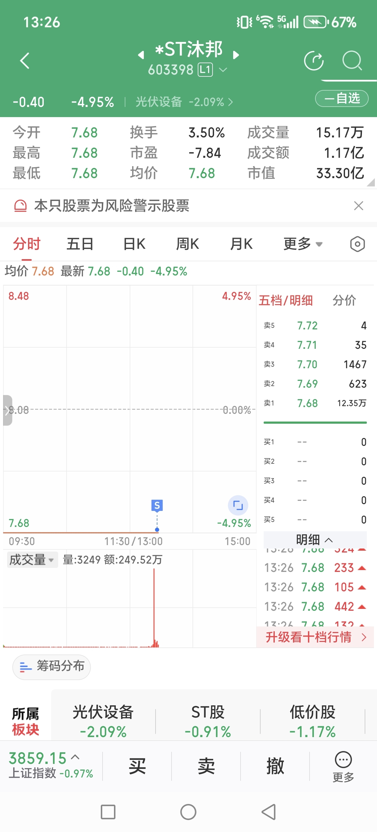$*ST沐邦(SH603398)$ 感谢 终于出来了 不进去了 还挣了几千