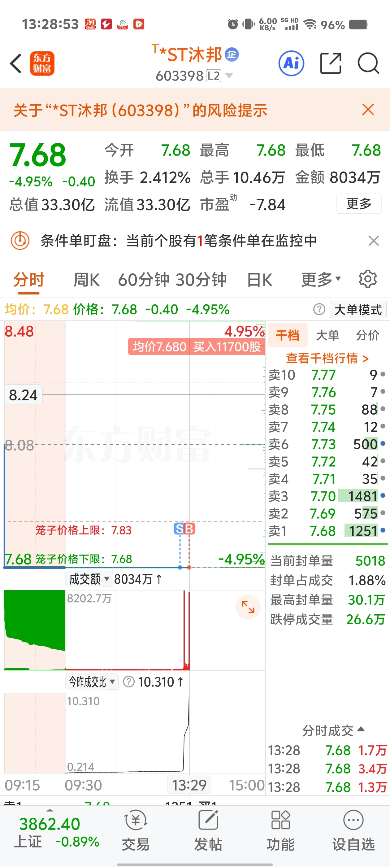 $*ST沐邦(SH603398)$ 刚卖出 又买入了