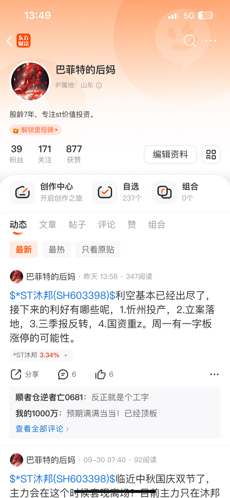 $*ST沐邦(SH603398)$ 我的分析含金量如何,虽然不是一字板,但是地天也不错!!