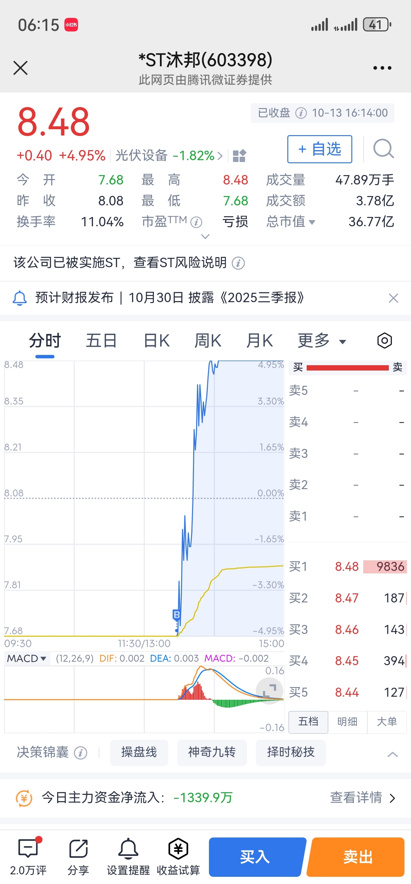 $*ST沐邦(SH603398)$ 7月25日和10月12日两次提示,真的希望这里能多一些有水平理智的帖子~怀念曾经的老巴,希望能和大家互相学习