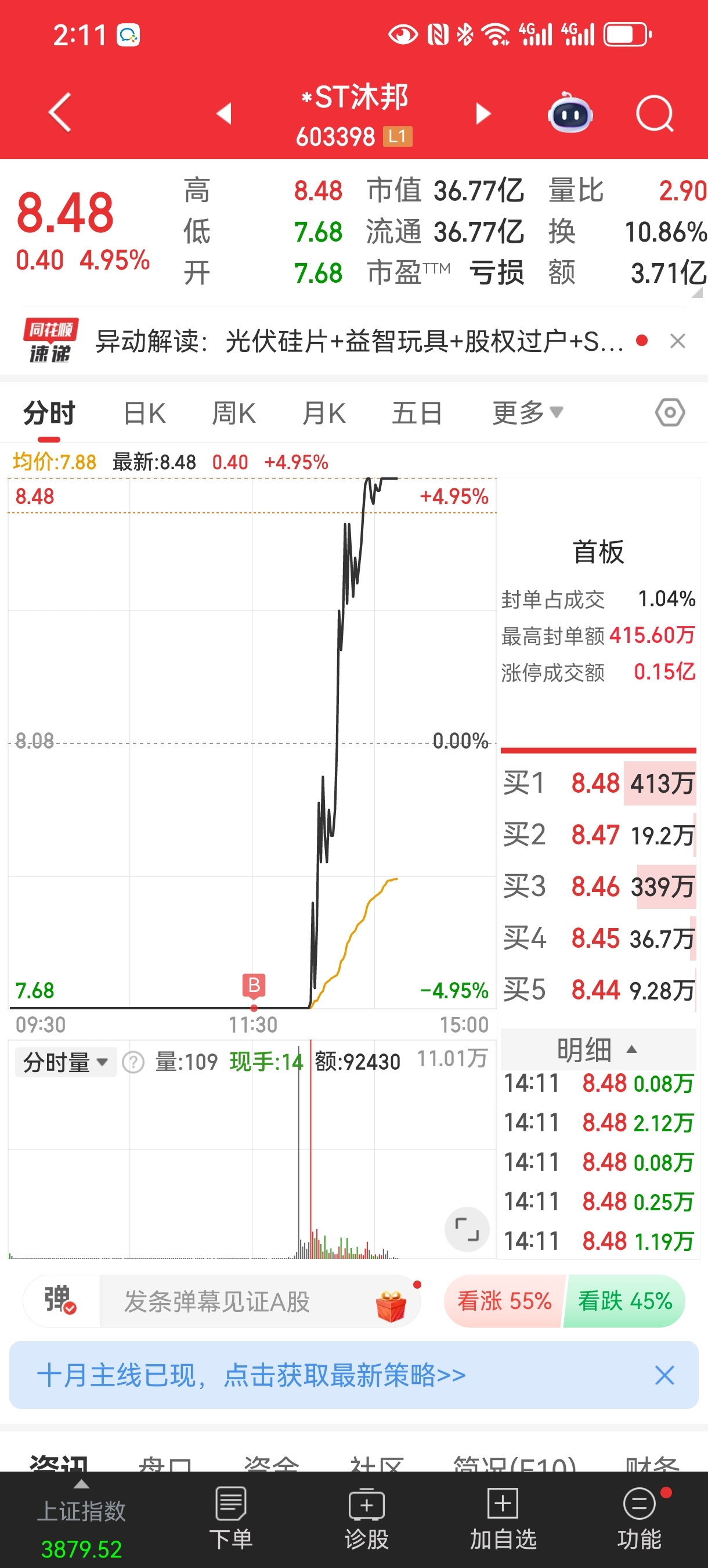 $*ST沐邦(SH603398)$ 买了一手,80块到手。