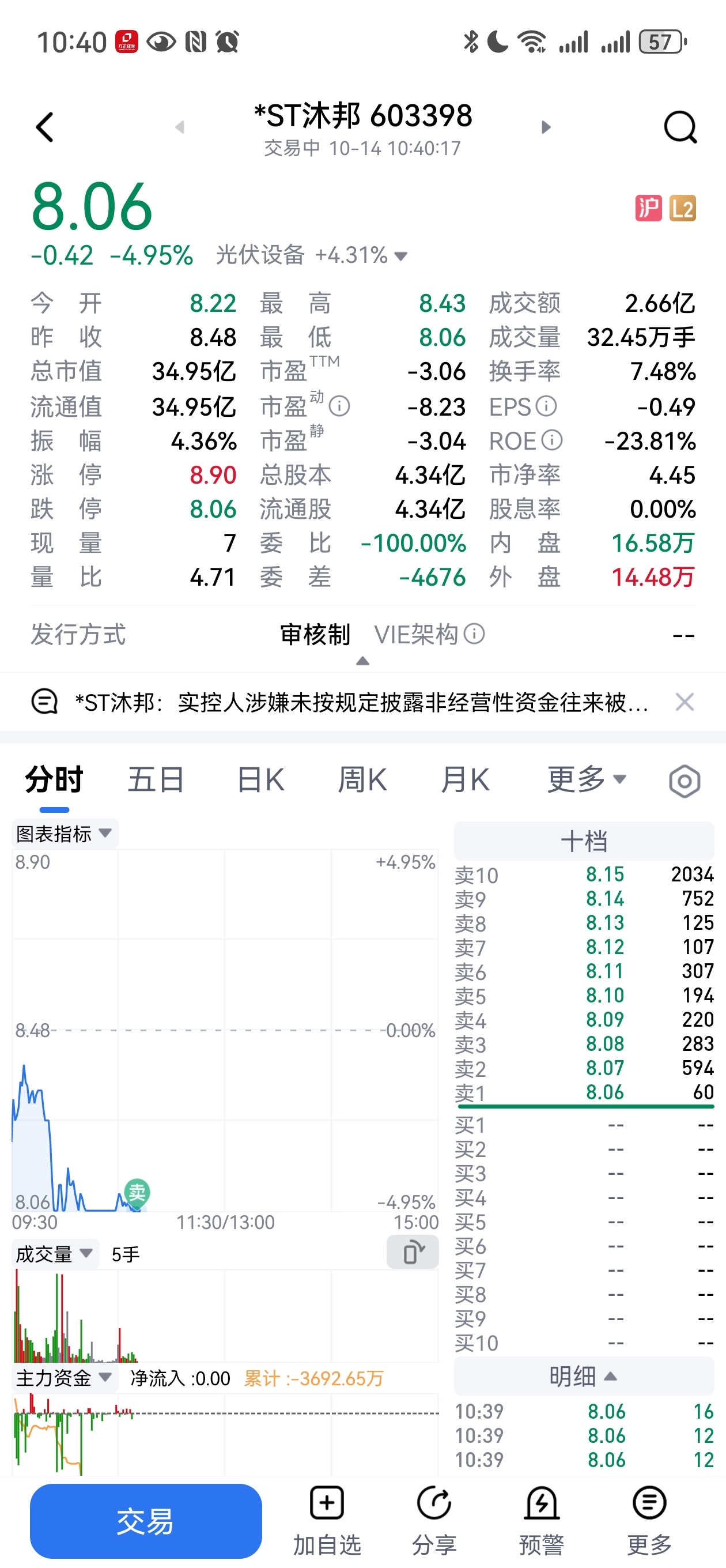 $*ST沐邦(SH603398)$ 太刺激受不了,留下的发财。