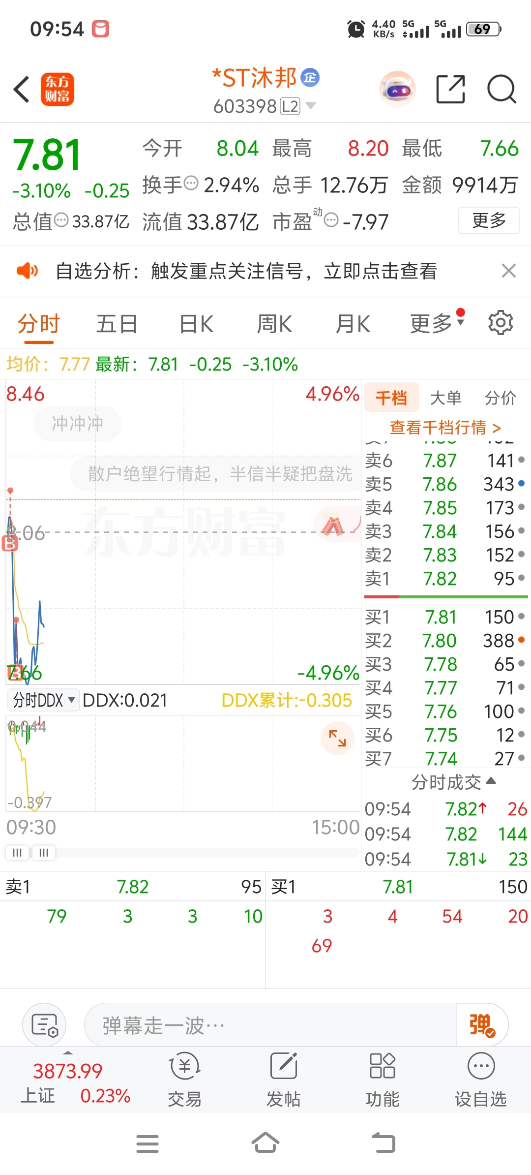 $*ST沐邦(SH603398)$ 刚来就挂山顶了,家人们,谁动啊!