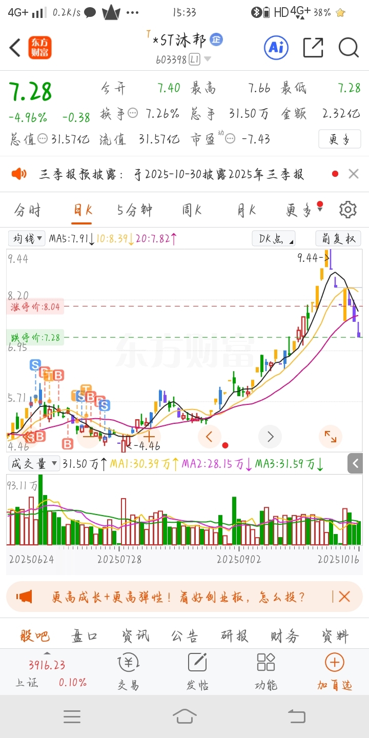 $*ST沐邦(SH603398)$ 大家看看我躺在差不多最低,会不会舒服点