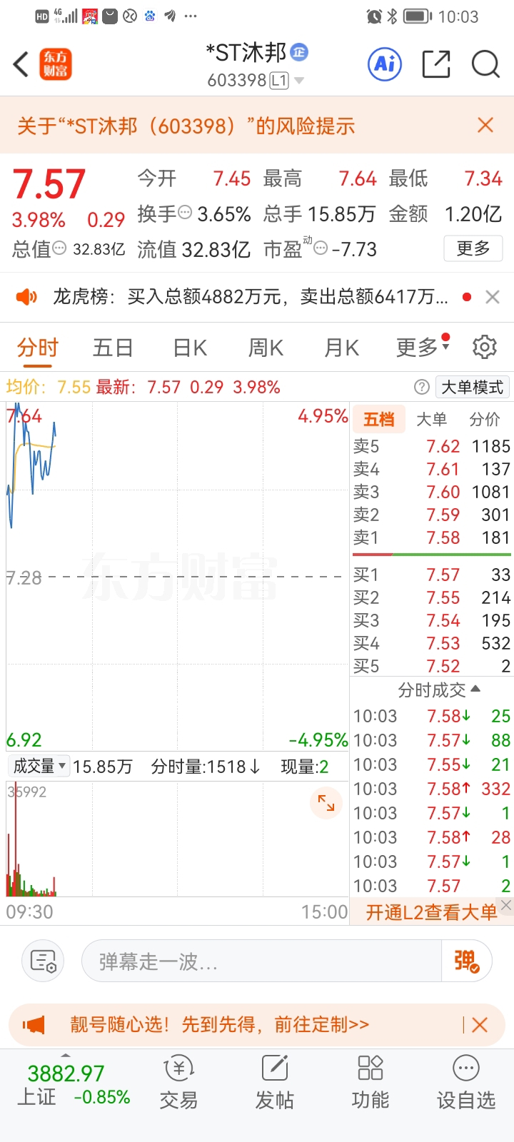 $*ST沐邦(SH603398)$ 各位出了达子的铁粉可跟我买入沐邦,邦子下周出监管,此时不买要追高了。$*ST正平(SH603843)$ $*ST美谷(SZ000615)$