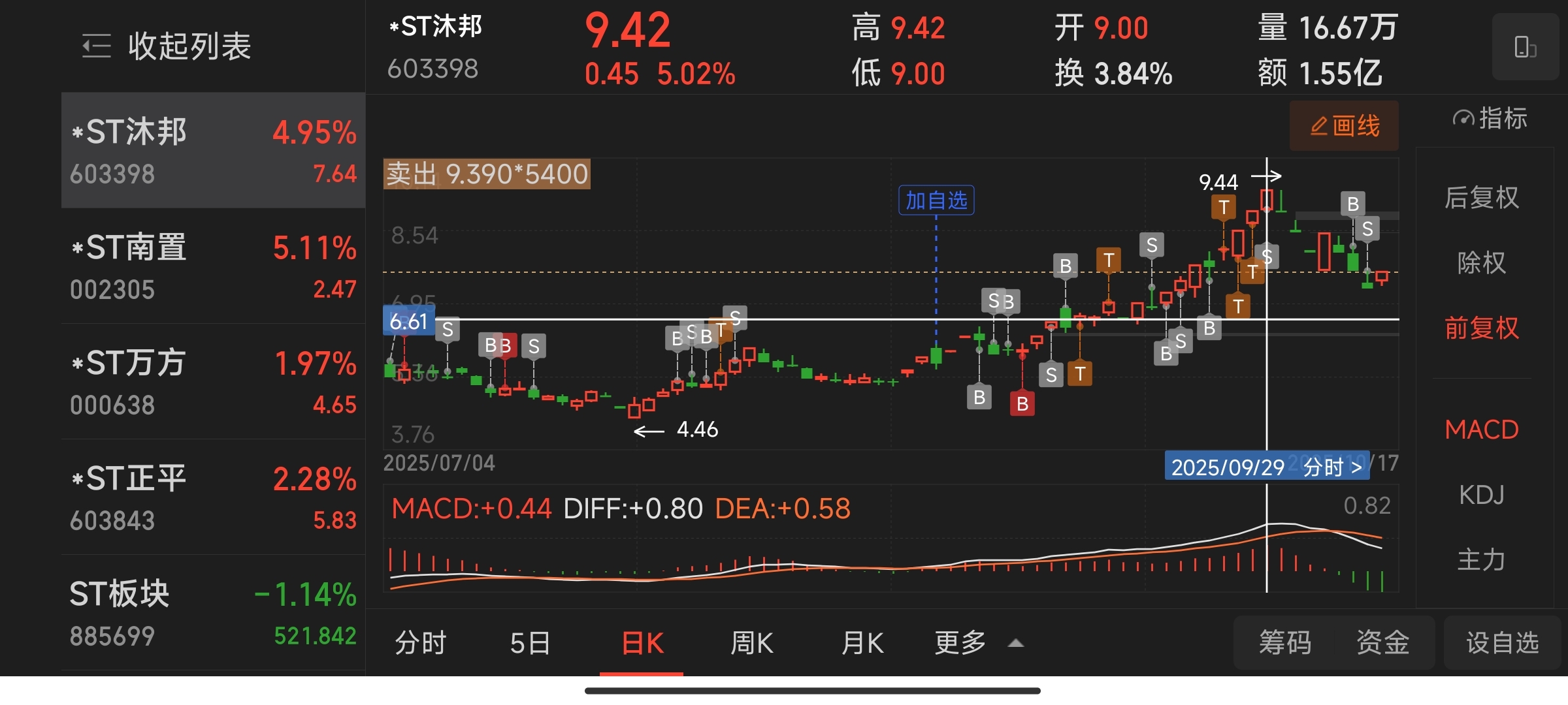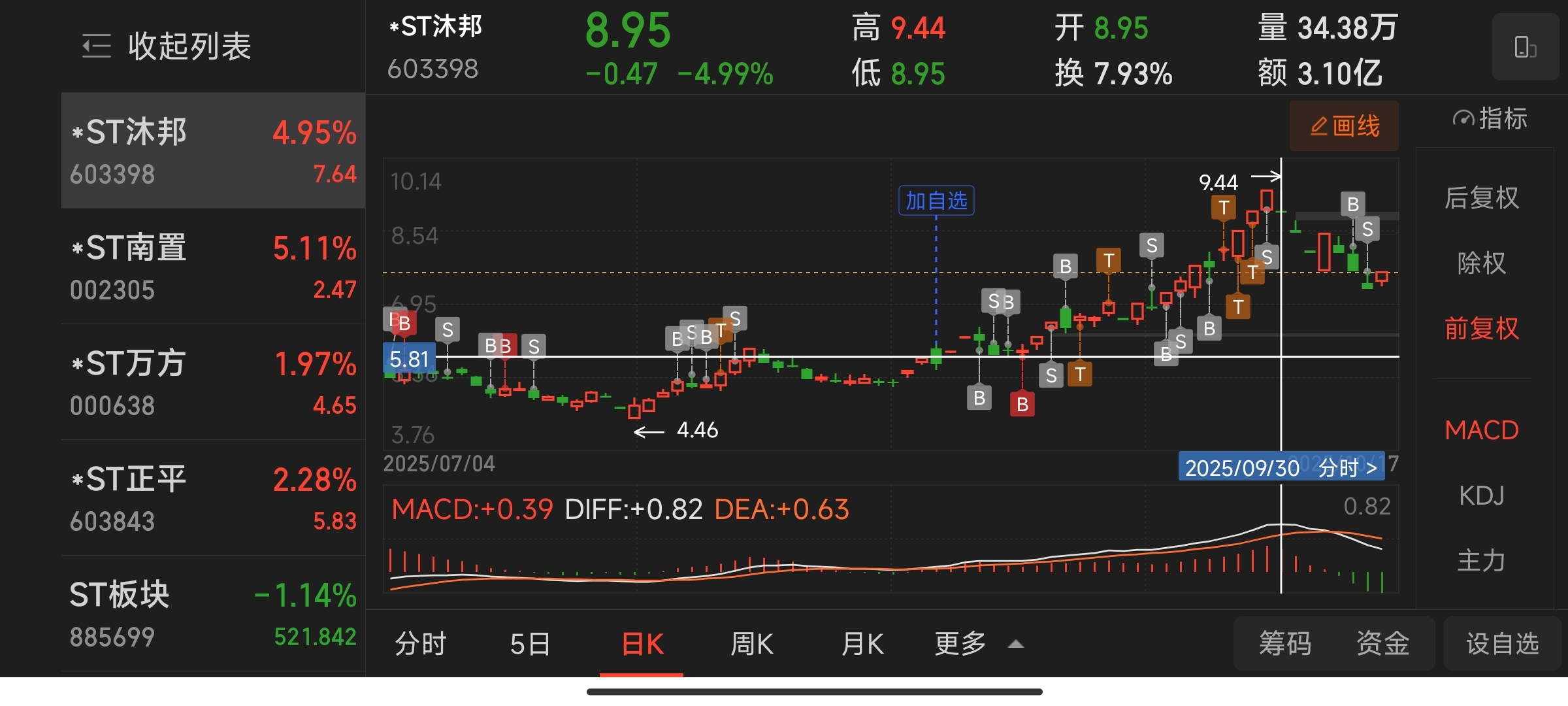 $*ST沐邦(SH603398)$ 到今天我都纳闷,为啥上30号跌停开,明明有机会出来,为啥还不走,29号已经开的不是很好了,已经有预示了,30号跌停开为啥还不走呢,30号也不是一字跌停板吧。