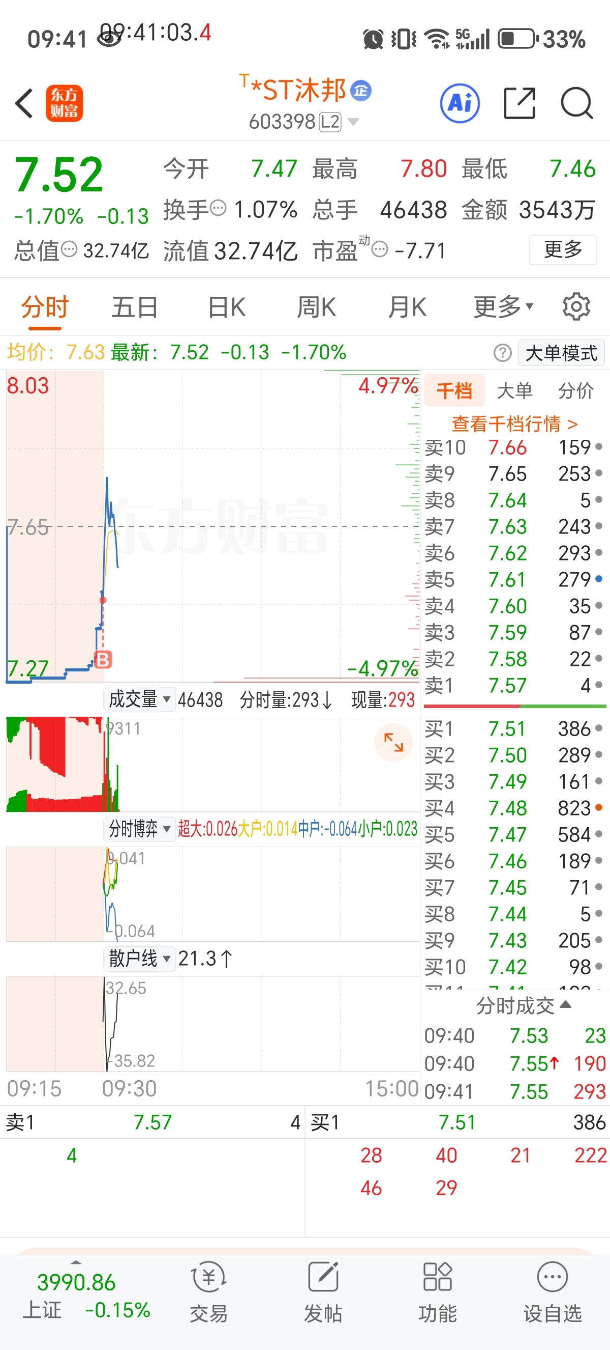 $*ST沐邦(SH603398)$ 跌停再补点儿