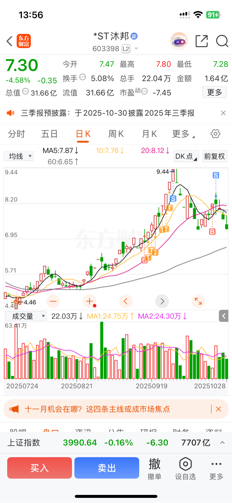 $*ST沐邦(SH603398)$ 板后可以买!买沐邦!硬邦邦!耐得住寂寞才行 每次回调-15%~20%上车即可!