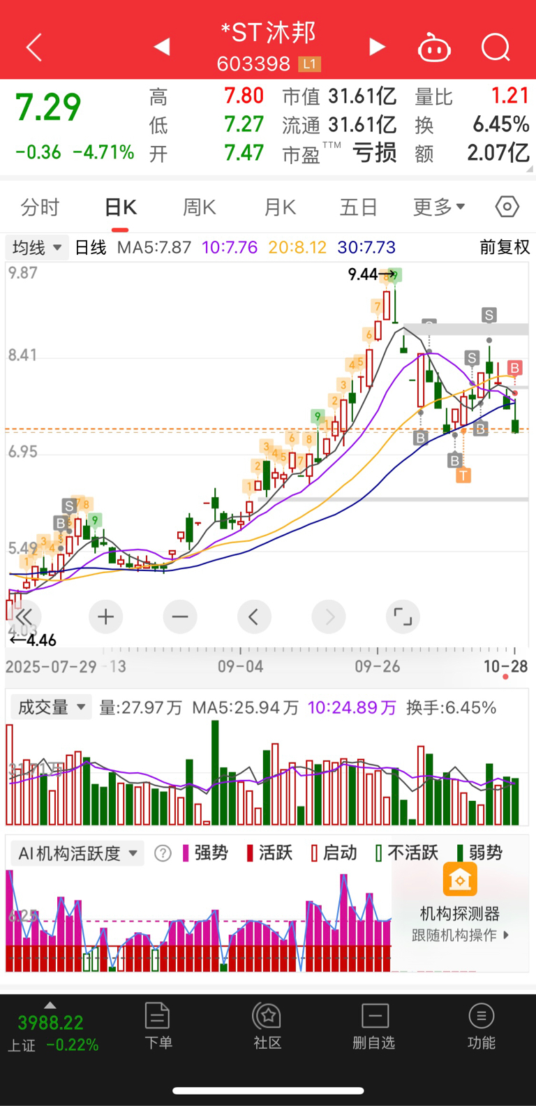 $*ST沐邦(SH603398)$ 在沐邦三进三出都是赚钱离场。不是股不好是你们不会玩