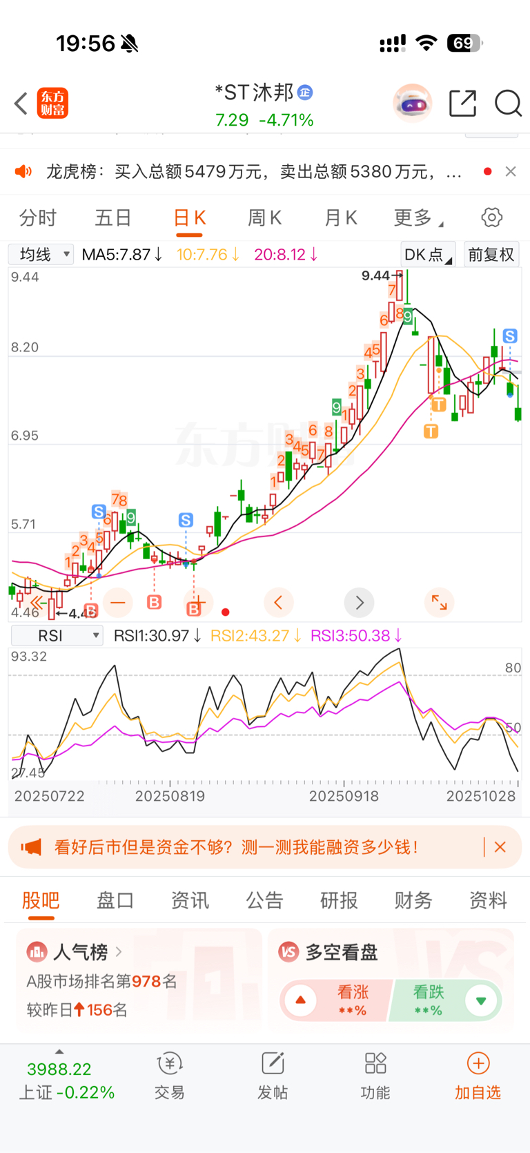 $*ST沐邦(SH603398)$ 本来看到12块的 结果一路下跌 扛不住走了