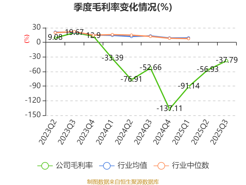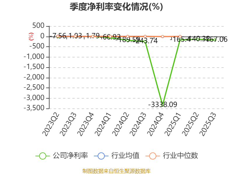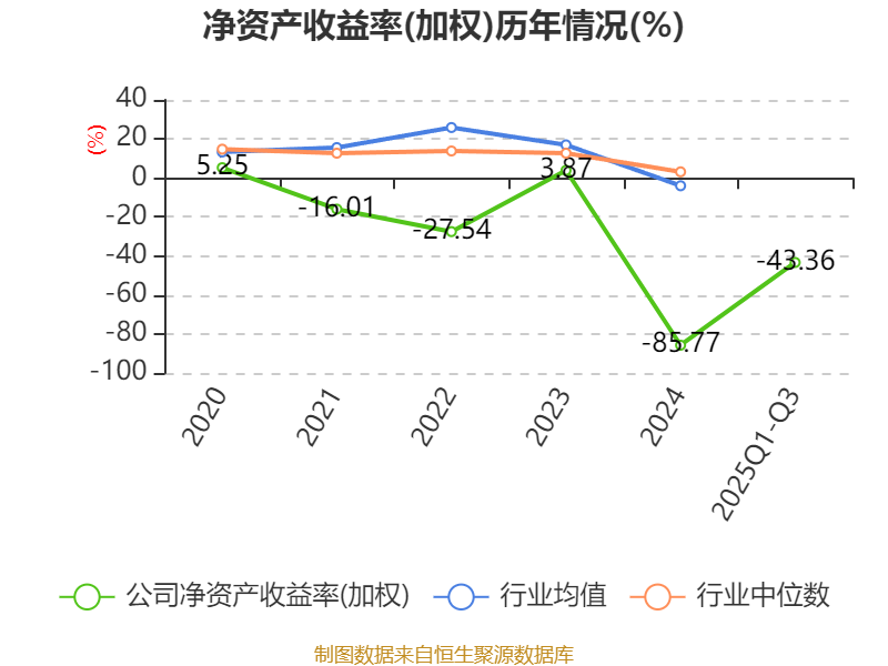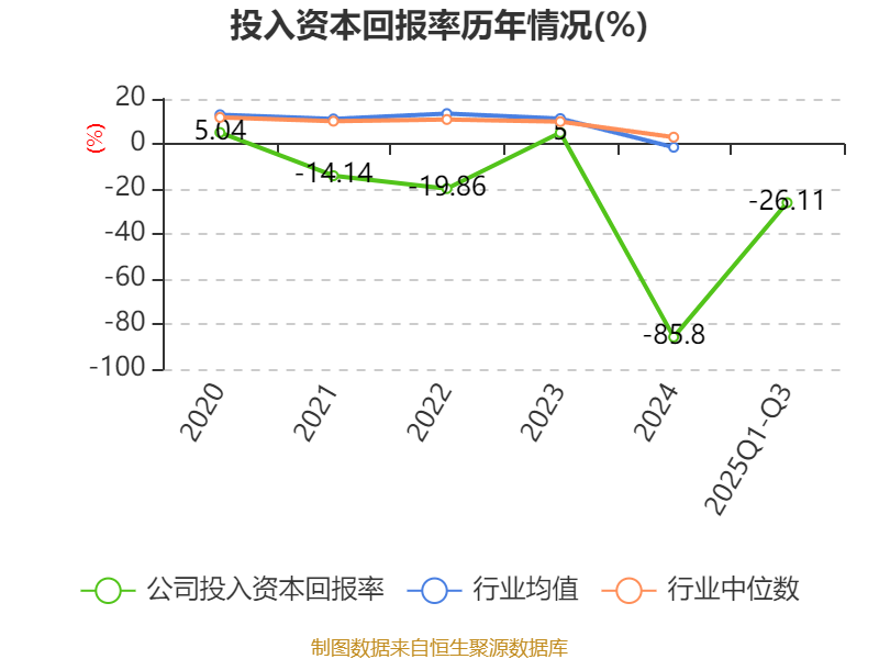 盈利能力方面, 2025年前三季度公司加权平均净资产收益率为-43.36%,同比下降25.93个百分点。公司2025年前三季度投入资本回报率为-26.11%,较上年同期下降10.09个百分点。
