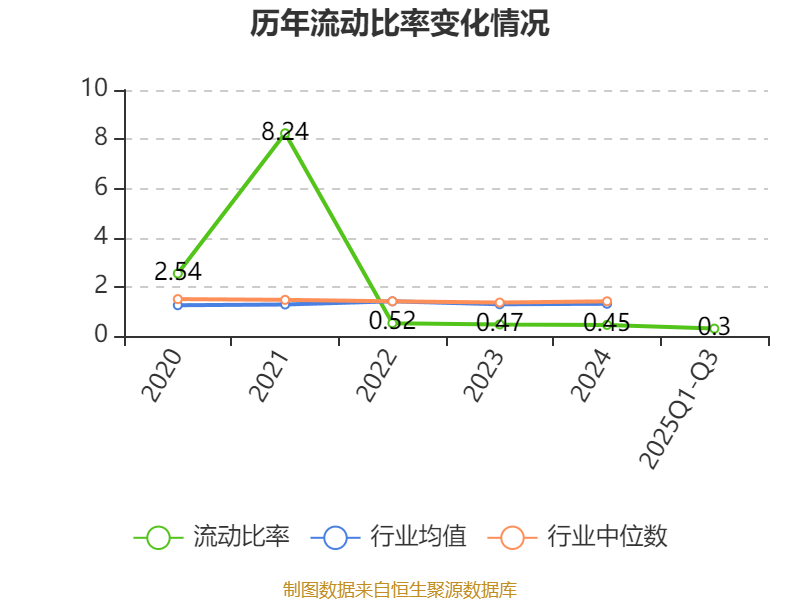 2025年前三季度,公司流动比率为0.3,速动比率为0.25。