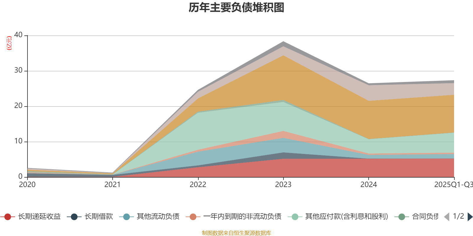 负债重大变化方面,截至2025年三季度末,公司其他应付款(含利息和股利)较上年末增加39.29%,占公司总资产比重上升5.69个百分点;短期借款较上年末减少25.26%,占公司总资产比重下降2.37个百分点;应付票据及应付账款较上年末减少1.08%,占公司总资产比重上升2.07个百分点;长期递延收益较上年末增加0.9%,占公司总资产比重上升1.3个百分点。
