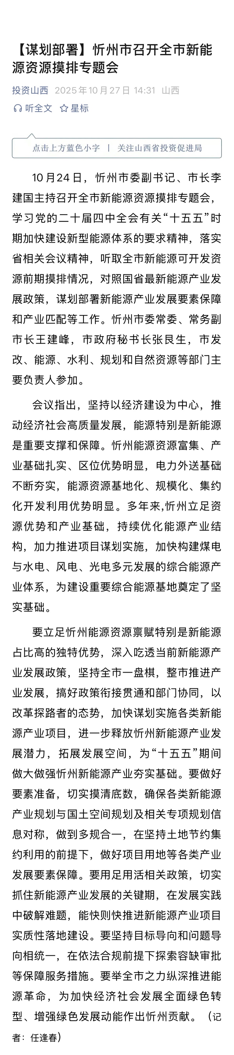 忻州政府的决心毋庸置疑。其中提到要举全市之力纵深推进能源革命,为加快经济社会发展