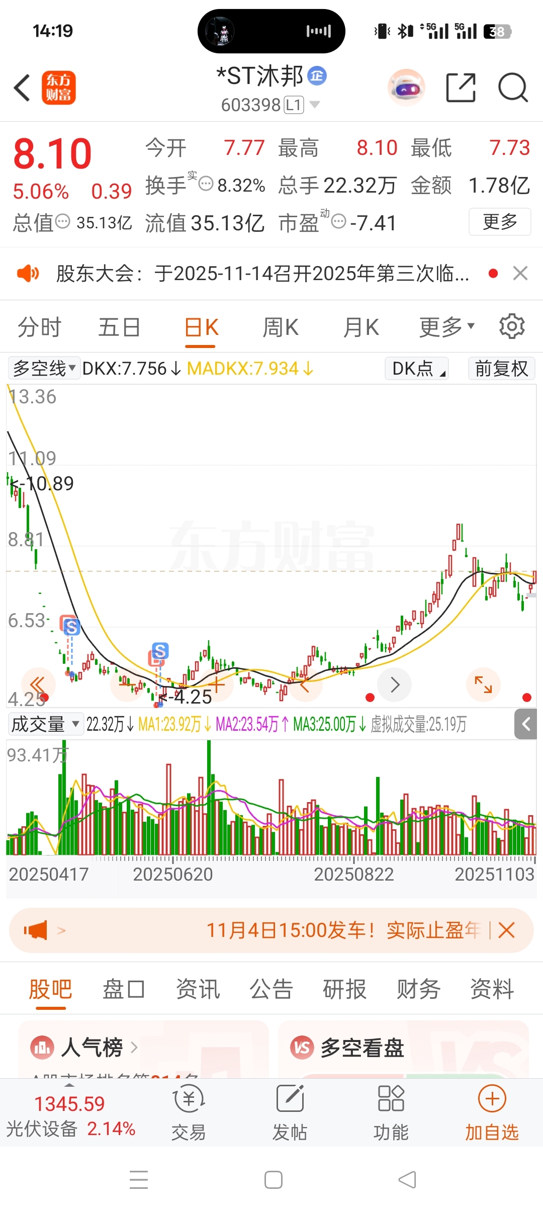 $*ST沐邦(SH603398)$ 短线不能干啊