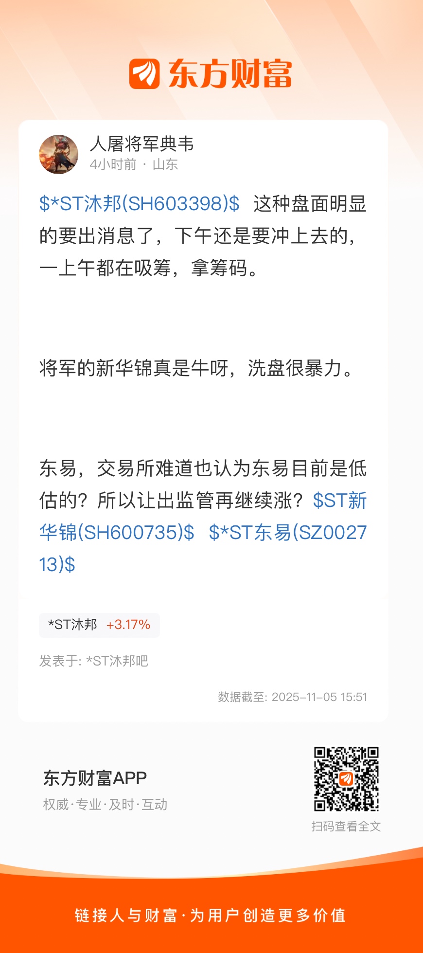东易,交易所难道也认为东易目前是低估的?所以让出监管再继续涨?$ST新华锦(SH600735)$ $*ST东易(SZ002713)$