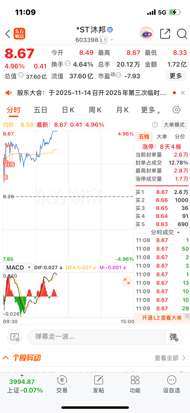 $*ST沐邦(SH603398)$ 上一点小仓位,风险不大